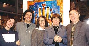 Une partie de l'équipe du Salon. De gauche à droite, Élisabeth Roy, relations de presse, Richard Leclerc, publicité, Louise Lemieux-Bérubé, présidente du Conseil des métiers d'art du Québec, Diane Labelle, directrice opératoire et marketing et Yvan Gauthier, directeur général.