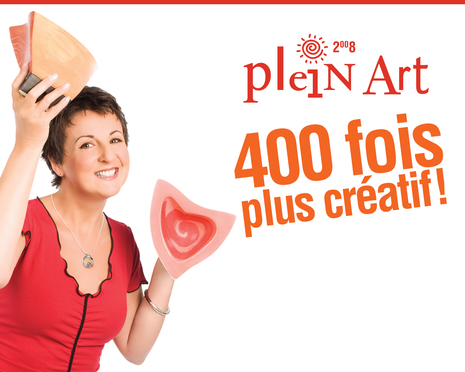 Pour souligner le 400e de Québec, il était normal de trouver une façon subtile d'associer la 28e édition de Plein Art à cette grande fête. Les premiers colons, qui fabriquaient tout de leurs mains, n'ont-ils pas été les premiers artisans de la Nouvelle-France? Marie-Lise Pilote est le porte-parole de l'événement pour une troisième année... j'ai bien voulu qu'on lui dessine une moustache et une barbichette pour qu'elle ressemble à Samuel de Champlain, mais cette image n'a finalement pas été retenue... On se reprendra au 500e!